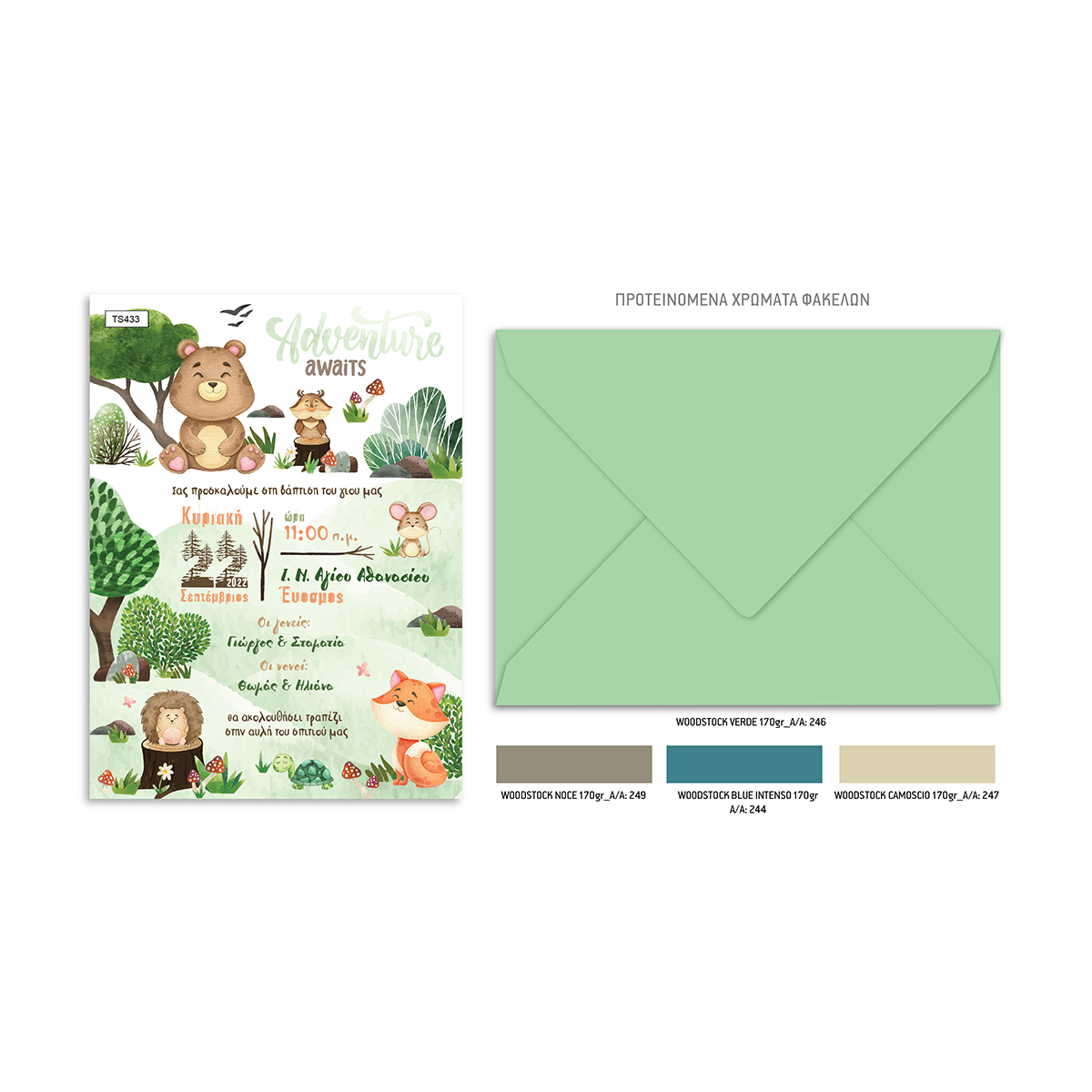 Baptism invitations in green shades. Baptism invitations in wonderful unique designs of timeless quality. Baptism invitation and its creation is a maximum specialty for us. We have all the necessary supplies to make your ideas a reality. We can also help you design the invitation you want if you are undecided.